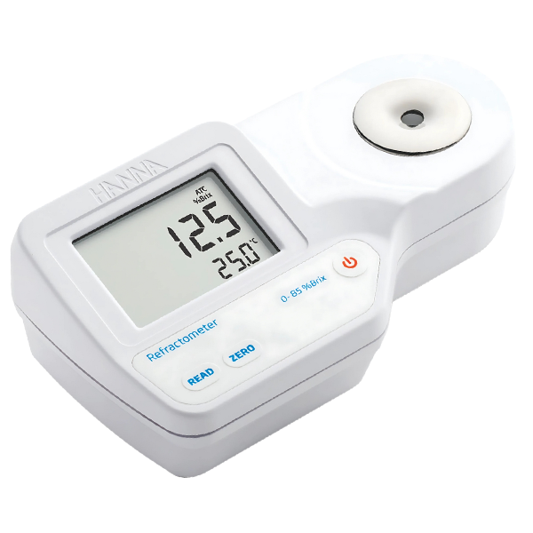 - Hanna HI 96801 (0-85% Brix): Hanna HI96801, sulu çözeltilerde şeker analizi için kullanılan dayanıklı ve portatif bir cihazdır. ±%0.2 doğruluk oranı ve basit iki tuşlu kullanımı ile dikkat çeker. Ayrıca, otomatik sıcaklık kompenzasyonu özelliği bulunur ve ölçümler yaklaşık 1.5 saniyede görüntülenir. IP65 koruma sınıfı ile su geçirmez yapıya sahiptir ve pil ile çalışır.