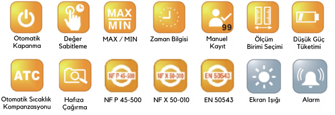 - IR (kızılötesi) veri çıkışı sayesinde, opsiyonel olarak temin edilebilen uyumlu AZ88998 harici yazıcı ile bağlantı kurularak ölçüm sonuçları anlık olarak fiş formatında çıktı alınabilir; bu özellik saha raporlama ve belgelendirme süreçlerinde önemli kolaylık sağlar.