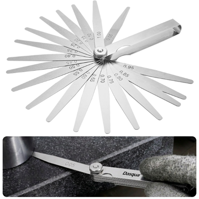 - Dasqua 1820-0100 filler çakısı; valf boşluğu, mekanik parça aralığı ve çeşitli ekipman ayar kontrollerinde kullanıma uygun bir yardımcı ölçüm ekipmanıdır.