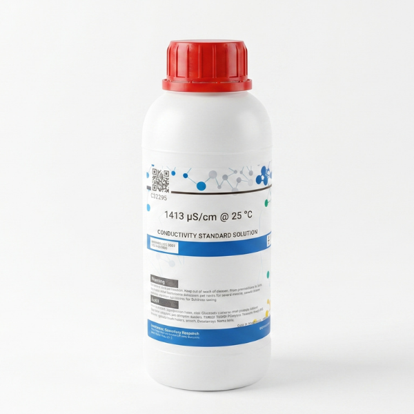 EC1413 İletkenlik 1413 µS/cm kalibrasyon çözeltisi, EC metre ve iletkenlik ölçer cihazların kalibrasyon işlemlerini güvenilir şekilde gerçekleştirmek ve ölçüm doğruluğunu kontrol etmek amacıyla kullanılan standart referans solüsyondur. 500 ml şişe formunda sunulan bu çözelti, 25°C’de 1413 µS/cm referans değeri sağlayarak laboratuvar, su analizi ve kalite kontrol uygulamalarında kararlı ve tutarlı kalibrasyon desteği sunar.