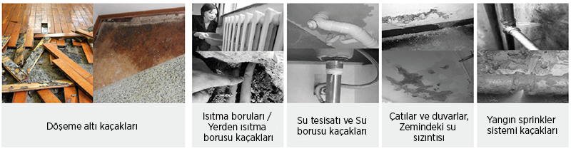 - Bu profesyonel kaçak tespit cihazı, zemin altı kaçaklar, ısıtma boruları ve yerden ısıtma sistemleri, su tesisatı ve boru hattı sızıntıları, çatı ve duvarlardaki nem sızıntıları, zemin altı su sızmaları ile yangın sprinkler sistemlerindeki kaçakların hızlı ve hassas biçimde tespit edilmesi için kullanılmaktadır.