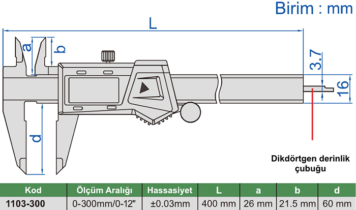 İnsize 1103-300 Dijital Kumpas Özellikleri