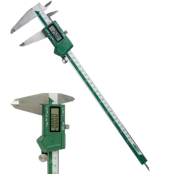 İnsize 1103-300 dijital kumpas, 0–300 mm geniş ölçüm aralığı sayesinde büyük ve orta ölçekli parçaların hassas ölçüm işlemleri için ideal bir çözümdür.