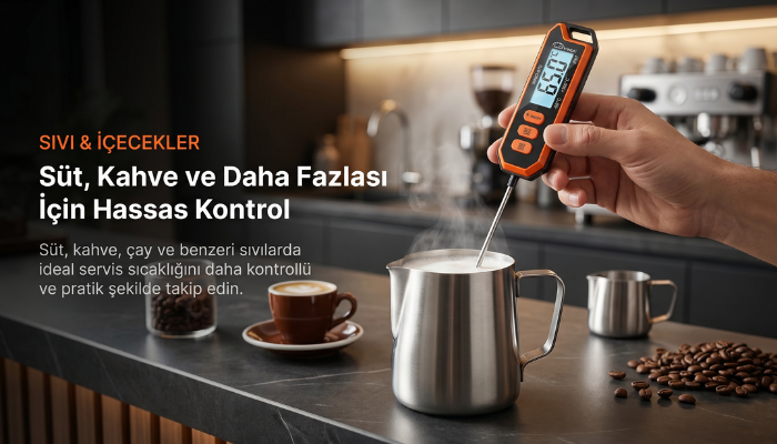 Süt, kahve, çay ve benzeri sıcak içeceklerde ideal servis sıcaklığını takip etmek için INNO-670 prob termometre pratik bir kullanım sunar. Sıvı sıcaklığını hızlı ve hassas şekilde ölçerek hem profesyonel mutfaklarda hem de günlük kullanımda daha kontrollü sonuçlar elde edilmesine yardımcı olur.