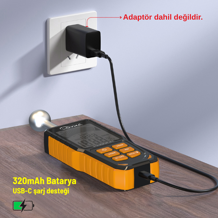 - Ürün, yapı malzemesi modunda ±2.5% doğruluk bilgisi ile sunulmaktadır. INDEX modu ise bağıl karşılaştırma mantığıyla çalışır. Böylece hem belirli malzeme gruplarında yaklaşık nem takibi yapılabilir hem de nemin yoğunlaştığı problemli alanlar daha hızlı şekilde belirlenebilir.