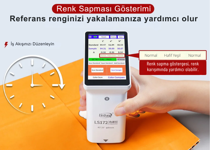- Bu sayede LS172 renk ölçer; baskı, etiketleme, ambalaj, grafik tasarım, renk formulasyonu ve kalite kontrol gibi profesyonel uygulamalarda doğru, kapsamlı ve esnek bir renk değerlendirme süreci sunar.