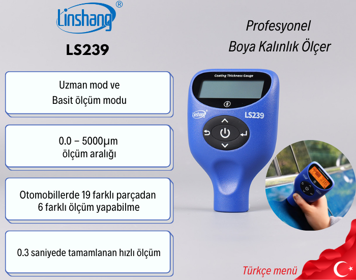 - LS239 boya kalınlık ölçer cihazı, otomobillerdeki boya katmanı kalınlığının hassas şekilde tespiti amacıyla geliştirilmiş profesyonel bir ölçüm ekipmanıdır.