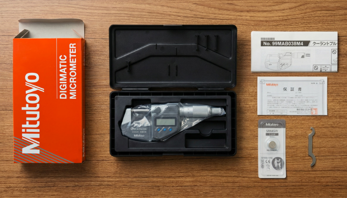 Ürün kutu içeriği; 1 adet mikrometre, 1 adet taşıma kutusu, kullanım kılavuzu, üretici test belgesi, 1 adet SR44 pil ve 1 adet ayar anahtarı (spanner)