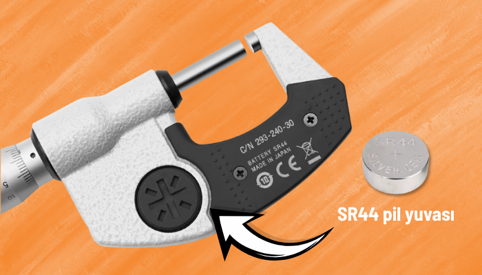 - 1 adet SR44 pil ile çalışan Mitutoyo 293-240-30 dijital mikrometre, 100 mm ve altı modeller için normal kullanım koşullarında yaklaşık 2.4 yıla kadar pil ömrü sunarak bakım ihtiyacını azaltır. Bu uzun pil ömrü, günlük profesyonel kullanımda cihazın daha kesintisiz ve daha verimli şekilde değerlendirilmesine katkı sağlar.