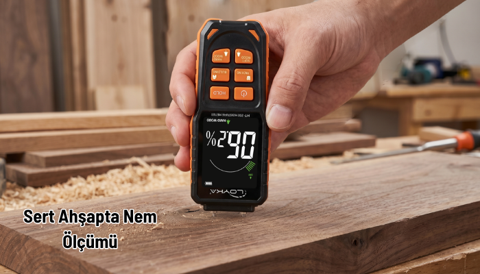 Meşe, kayın, ceviz ve benzeri daha sert yapıya sahip ahşap türlerinde nem ölçümü yapılmasına yardımcı olur. Parke, masif ahşap, mobilya parçaları ve sert ağaç ürünlerinde kontrollü ölçüm için idealdir.