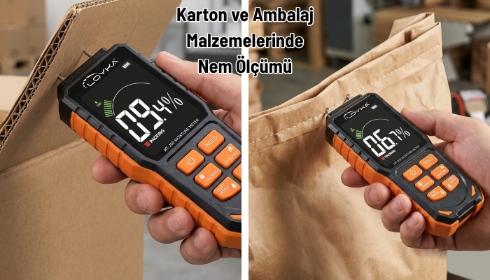 Oluklu mukavva, kraft kağıt torba, kağıt ambalaj ve benzeri paketleme malzemelerinde nem kontrolü için kullanılabilir. Depolama koşullarının takibi, sevkiyat öncesi kontrol ve ambalaj kalitesinin değerlendirilmesi gibi uygulamalarda pratik fayda sağlar.
