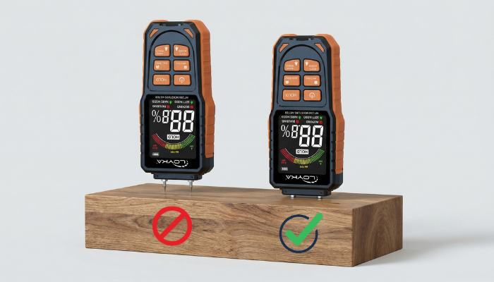 - Cihaz, yalnızca ahşap için değil; çimento, sıva, alçı ve benzeri yapı malzemelerinde de kullanılabilecek Building modu ile daha geniş bir uygulama alanı sunar. Bu özellik, tadilat öncesi kontrol, yüzey kuruluğu takibi ve nem riski değerlendirmelerinde avantaj sağlar.