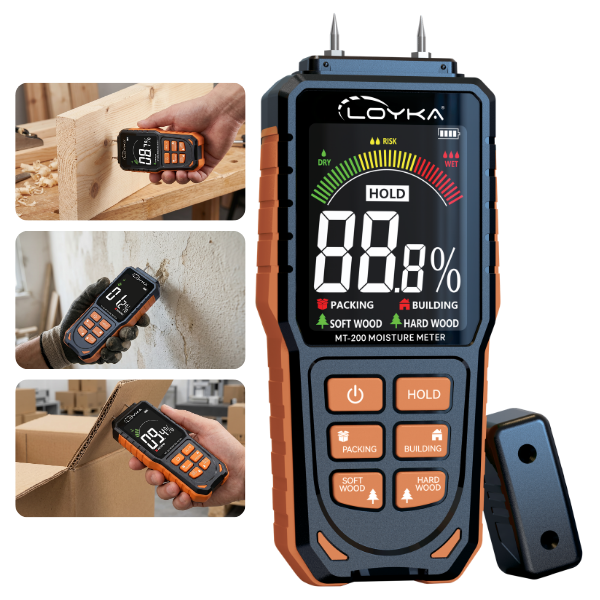 MT-200 iğne problu nem ölçer; ahşap, yapı malzemeleri ve ambalaj malzemelerinde nem seviyesini doğrudan temaslı ve noktasal olarak kontrol etmeye yardımcı olan profesyonel bir ölçüm cihazıdır. Pinsiz modellere göre, iğne probları ölçüm yapılacak yüzeye doğrudan uygulanarak seçilen bölgedeki nem durumunun daha lokal ve kontrollü şekilde değerlendirilmesini destekler.