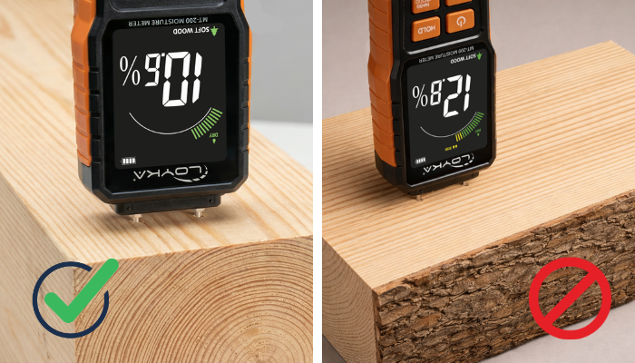 Ahşapta lif yönüne paralel yapılan ölçümler, elektriksel iletkenlik farkı nedeniyle sapmalı sonuçlar oluşturabilir. Daha tutarlı sonuçlar için probların lif yönüne dik şekilde uygulanması önerilir.