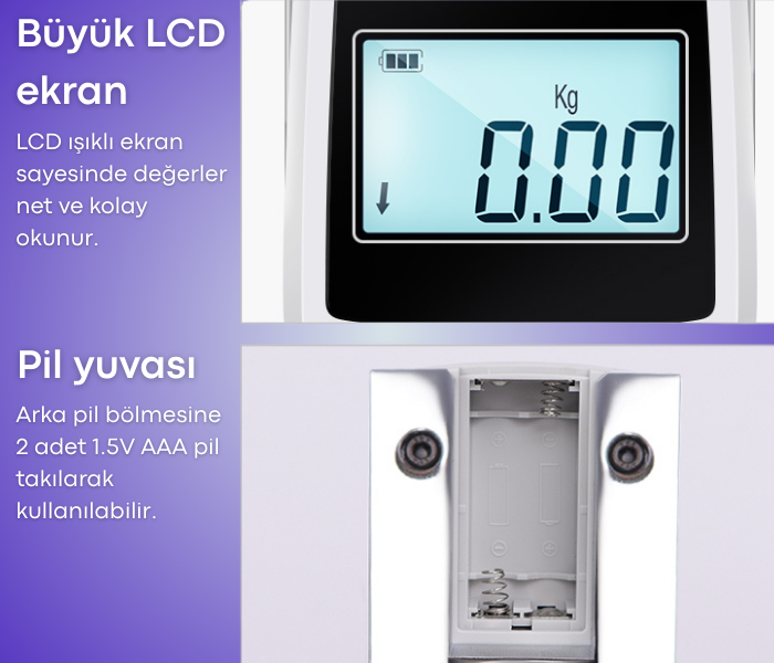 - Dijital ekran üzerindeki arka LED ışık desteği, düşük ışıklı ortamlarda bile ölçüm değerlerinin net ve kolay okunmasını sağlar.