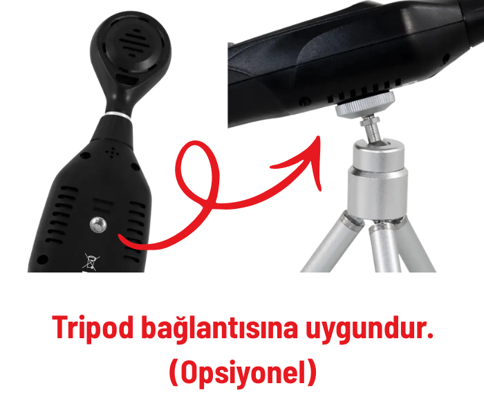 - Tripod montajına uygun yapısı, sabit konumda uzun süreli ölçüm uygulamalarında stabil ve konforlu kullanım sunar.