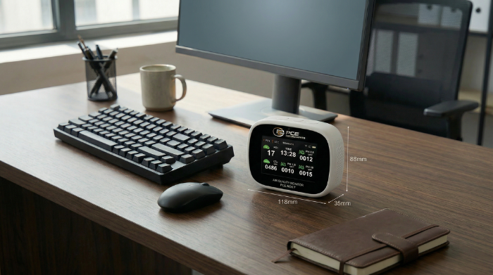 - PM1 / PM2.5 / PM10 partikül madde ölçümlerini destekleyerek havadaki ince toz yoğunluğunu hassas biçimde izlemenizi sağlar. Böylece özellikle ofis, okul, hastane ve üretim alanlarında hava kirliliğinin mikroskobik seviyedeki etkileri takip edilebilir.