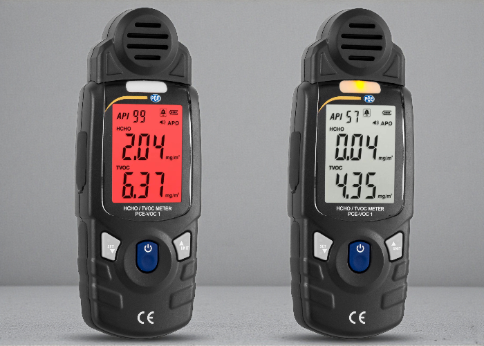 PCE-VOC 1, ölçülen VOC ve formaldehit seviyelerine bağlı olarak ekran rengi ve uyarı göstergeleriyle kullanıcıyı anlık olarak bilgilendirir. Yüksek konsantrasyonlarda görsel ve sesli uyarı vererek riskli durumların hızlı şekilde fark edilmesini sağlar..png)