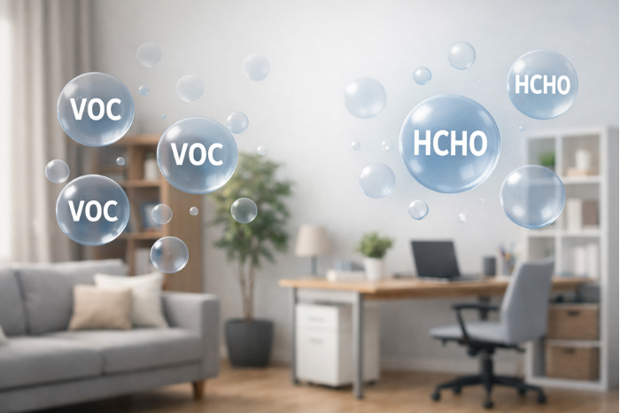 VOC (Uçucu Organik Bileşikler) ve formaldehit, oda sıcaklığında kolayca buharlaşabilen, havaya karışarak iç hava kalitesini olumsuz etkileyebilen kimyasal maddelerdir.