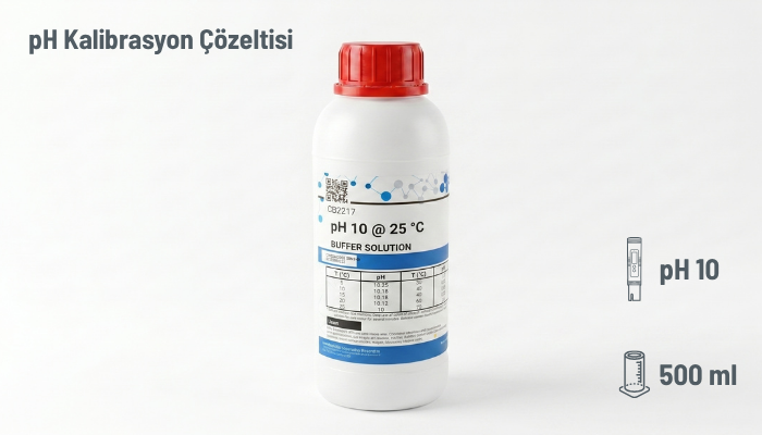 - PH 10 tampon değeri ile bazik aralıkta yapılan PH metre kalibrasyon işlemleri için güvenilir referans noktası sağlar.
