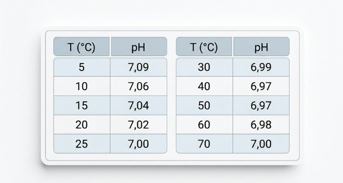PH 7 tampon çözeltisi, nötr referans noktasında sıcaklığa bağlı olarak farklı pH değerleri gösterebilir. Daha tutarlı kalibrasyon sonuçları için işlem sırasında sıcaklık tablosundaki uygun referans değerin dikkate alınması önerilir.