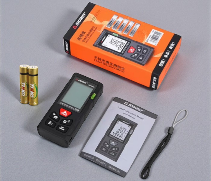 SNDWAY SW-MS50 lazer mesafe ölçer cihazı; başlangıç serisi olmasından dolayı ekonomik fiyatıyla öne çıkan, inşaat sektörü başta olmak üzere birçok alanda mesafe ölçüm ihtiyaçları için ulaşılabilir bir uzunluk ölçüm cihazıdır.