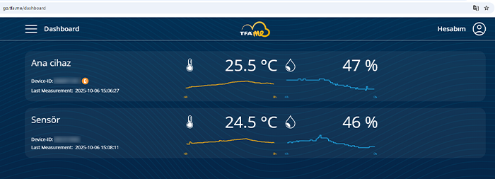- TFA.me portalı, ölçüm verilerini yalnızca göstermekle kalmaz; aynı zamanda grafiksel analiz, veri dışa aktarma ve e-posta yoluyla alarm bildirimleri gibi gelişmiş özellikler sunar. Ayrıca tüm ölçüm geçmişi sistemde en az 12 ay süreyle güvenli şekilde saklanır.