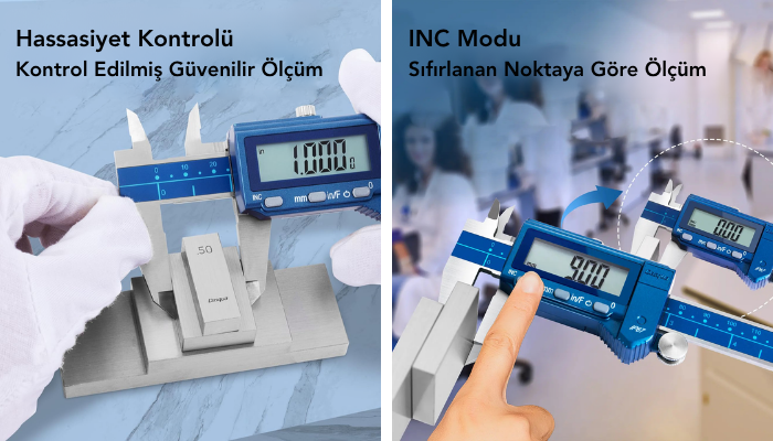 - İç çap, dış çap, derinlik ve basamak ölçümü