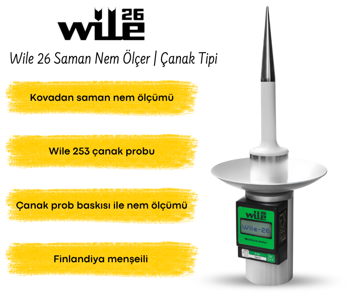 - Wile 26, yalnızca balyalanmamış (gevşek) samanın nemini ölçmek için tasarlanmış profesyonel bir nem ölçüm cihazıdır. Finlandiya üretimi olan bu model, tarım sektöründe yüksek doğrulukta sonuçlar elde etmek için geliştirilmiştir.