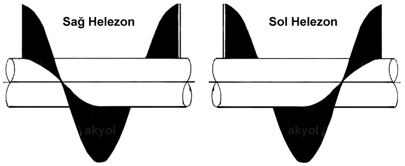 Yaprak şeklinde olup kaynatılarak eklenen tipte helezonlar. Özellikle büyük bir helezon kullanmak gereken durumlarda taşıma zorluğundan dolayı tercih edilir. Yüzlercesi birbirine kaynatılarak uzun bir helezon haline getirilebilir. Çekme şeklinde imal edilemeyen helezonlarda da istenen kalınlıkta imal edilerek kaynakla birbirine bağlanarak yine birçok sektörde kullanılır.